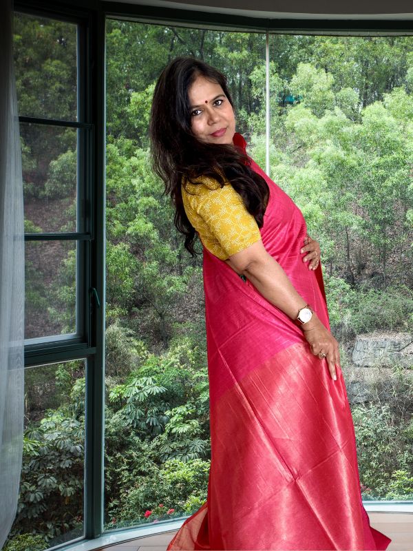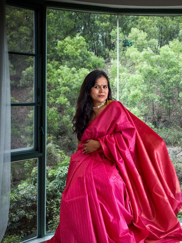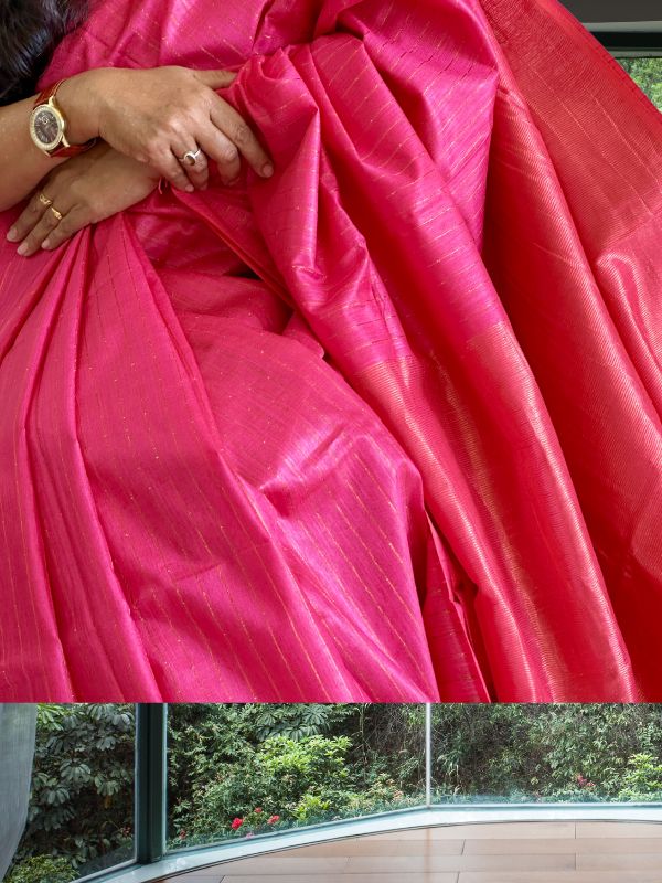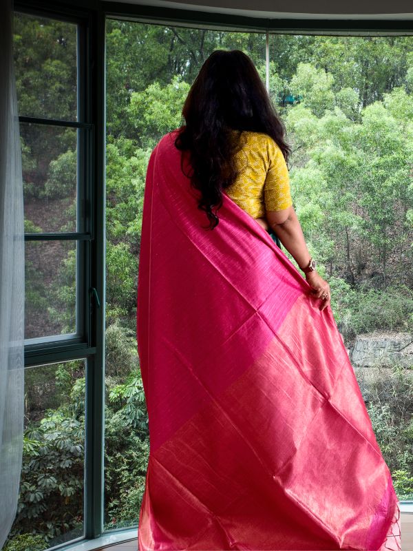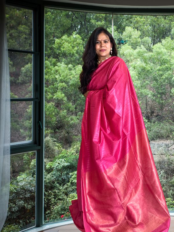 Hot Pink Tussar Silk Saree – A Bold Expression of Refined Elegance