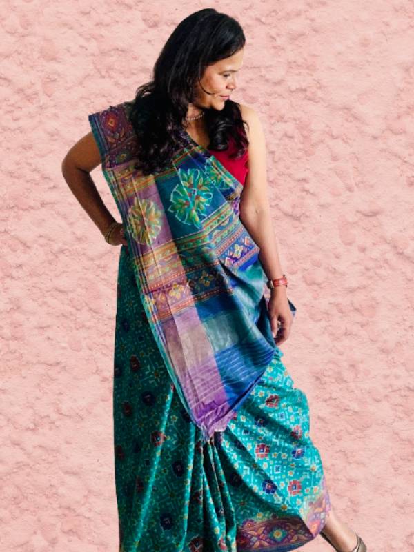 The Patola Mayuri Saree is made from a luxurious blend of cotton and silk, ensuring both comfort and durability. The breathable cotton ensures ease of wearing for extended hours, while the silk adds an opulent sheen, lending a touch of grandeur to your look. It strikes the perfect balance between practicality and stylish flair, making it ideal for various occasions.